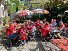 Bei schönstem Maiwetter starteten 29 motivierte, gutgelaunte Velofahrerinnen und Velofahrer in drei Gruppen zu unserer 2. Ausfahrt. Aufgrund ihrer Länge, je nach Startort ca. 45 - 65 km, war die Tour so ausgeschrieben, dass auch unterwegs noch "eingestiegen" werden konnte. So starteten 22 Personen ab Köniz. Auf "Schleichwegen", durch Quartiere, über Radwege gings Richtung Bremgartenwald. Dort warteten bereits zwei weitere Teilnehmer auf uns. Via Halenbrücke, Herrenschwanden gings weiter zum Znünihalt ins Restaurant Linde in Kirchlindach, wo uns weitere fünf erwarteten. Über Land entlang üppiger Wildblumenwiesen, blühenden Bäumen, durch Wälder um den Schüpberg führte unser Weg über Grächwil, Ziegelried zum Mittagshalt nach Aarberg. Der Märit interessierte die wenigsten, denn der Picnicplatz an der alten Aare und das Café Burkhalter lockten zum Verweilen. Nach der verdienten Mittagspause führte uns der Weg dem Aareufer entlang bis zum Stauwehr Niederried. Via Detligen, Salvisberg erreichten wir den Wohlensee beim Kraftwerk Mühleberg. Die Gruppe aus Kirchlindach verliess uns hier und nahm den Weg zurück unter der Leitung von Fritz unter die Räder, teils aus Strommangel oder weil die Tour es so erlaubte. Für den Rest der Gruppe gings via Heggidorn, durch den Forst nach Oberwangen in den Hirschen. Nach dem traditionellen Schlusstrunk machten wir uns individuell und mit vielen schönen Eindrücken auf die Heimfahrt. Wir vom Leiterteam sind jeweils froh, wenn wir die Tour als unfall- und pannenfrei melden können. Was auch diesmal - mit Ausnahme eines individuell gelösten Strommangels - wieder der Fall ist. Ein grosses Dankeschön den beiden Co-Leitern Arthur und Hansueli sowie allen Schlussfahrern.