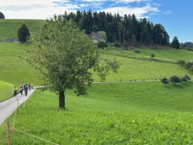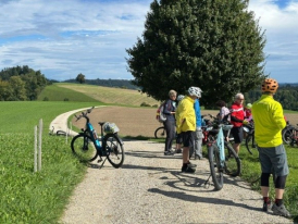 24 PTS-ler/innen sind am Morgen um 09.30 Uhr erwartungsvoll im Forum Sumiswald gestartet - in 3 Gruppen. Route: über Asphalt, Wald-/Feld und wenigen Schotterwegen zuerst hinauf in die Schaukäserei Affoltern zum Kaffeehalt. Weiter, in einem wechselnden auf und ab - wie es im Emmental so üblich ist - nach Ursenbach und zur Karderei und Wollpara - dies in Huttwil. Der dortige interessante Picknickplatz wird umrahmt von Jurten und allerlei (Wolle-spendenden) Tieren. Gestärkt nahmen wir nach Schwarzenbach den Aufstieg nach Oberwald in Angriff. Auf der Sonnenterrasse des altehrwürdigen Restaurants Hirschen gönnten wir uns neben dem Kafi auch eine Glace. Bald danach erreichten wir den höchsten Punkt mit herrlicher Aussicht auf Alpen und Jura, bevor wir in rasanter Abfahrt nach Wasen i.E. und zum Schloss Sumiswald zum Schlusstrunk bei "proBIERmi.ch" gelangten. "Isch ä ganz schöni Tour gsi". Herzlichen Dank den Leitern Beat Haslebacher und Arthur Werren. Sportliche Grüsse Fritz Mathys